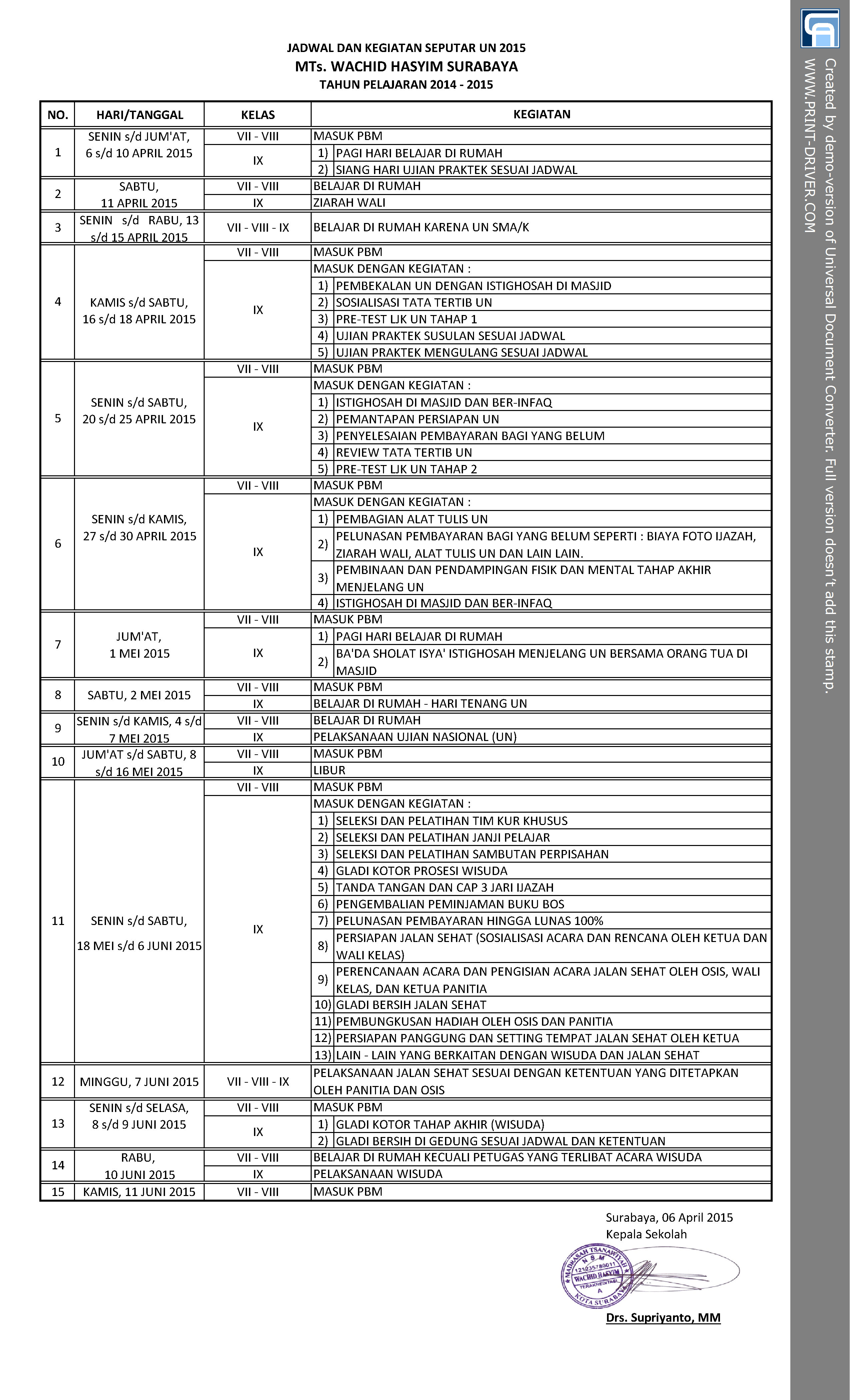 JADWAL DAN KEGIATAN SEPUTAR UN – 2015